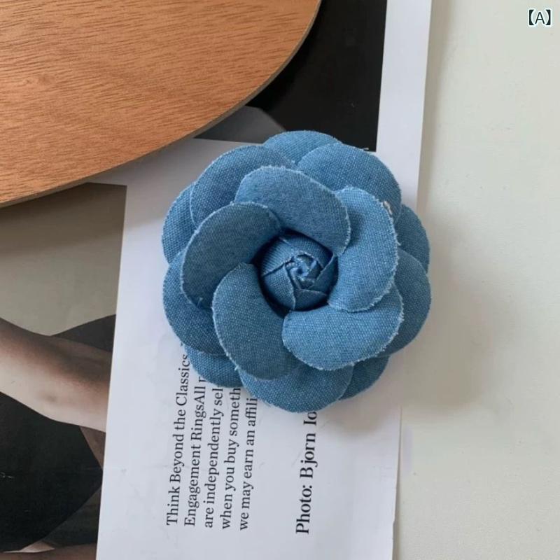 ブローチ レディース デニム カメリア 立体花 高級感 上品 エレガント コサージュ ピン ヘアクリップ アクセサリー ファッション小物 韓国ファッション 2way