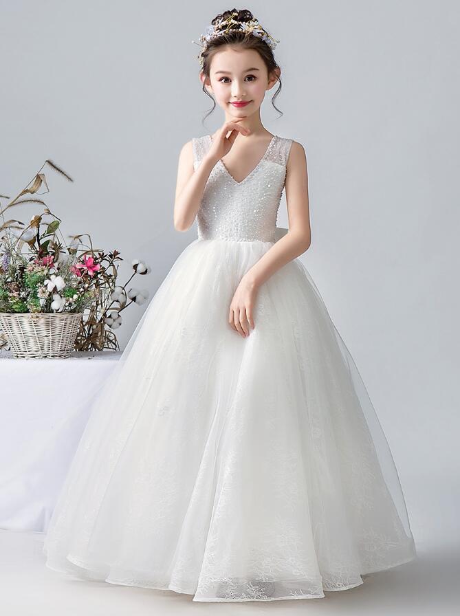 高品質 お姫様 キッズ フォーマル ジュニア 子供服 女の子 ピアノ プリンセス 発表会 七五三 結婚式 パーティードレス マキシ丈ワンピース ウェディングドレス 衣装 袖なしVネ ブライダル