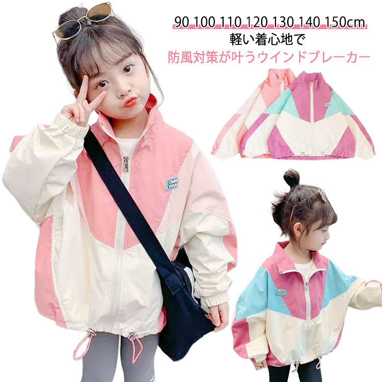 女の子 子供服 キッズ アウター フードなし ジャケット ウィンドブレーカー ジャンパー 色切り替え ブルゾン ナイロンジャケット 薄手 スポーツ 防風 秋 マウンテンパーカー 秋コート 春アウタ 冬