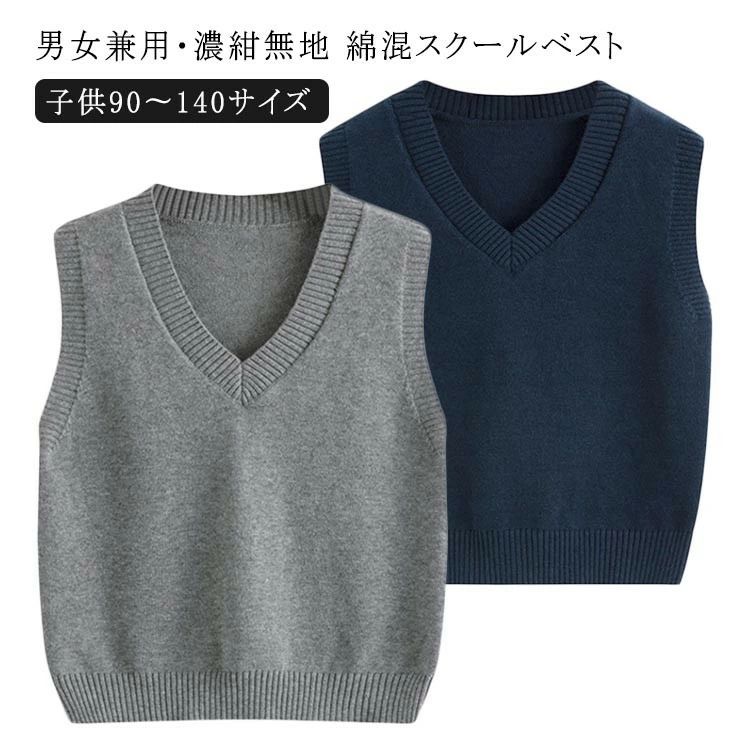 紺 小学生 ベスト 綿混スクールセーター 男女兼用 スクール ネイビー 濃 Vネック スクールベスト 140サイズ 濃紺無地 綿 子供90