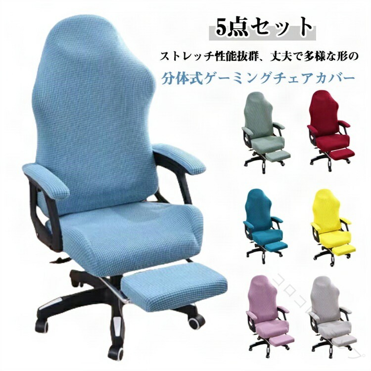 伸縮素材でフィットしやすく洗濯可能なゲーミングチェアカバー 5点セット オフィスや自宅の回転式椅子に最適な防塵汚れ防止アイテム