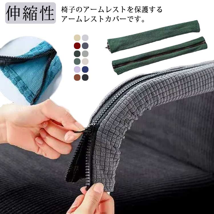 アームカバー アームレストカバー 座椅子 保護カバー オフィスチェア 肘掛けカバー ストレッチ 伸縮性 簡単着脱 椅子肘保護カバー ジッパー 水洗い 1ペア 事務所 回転椅子 パソコンチ 取り外し可能