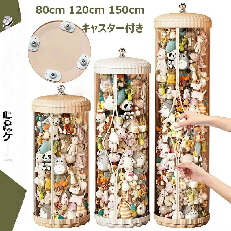 ぬいぐるみ収納 おもちゃ収納ボックス 円柱形 蓋付き 大容量 透明 収納ケース キャスター付き 組み立て式 収納チューブ 展示ボックス 防塵 コレクションケース 推し活 収納ラック