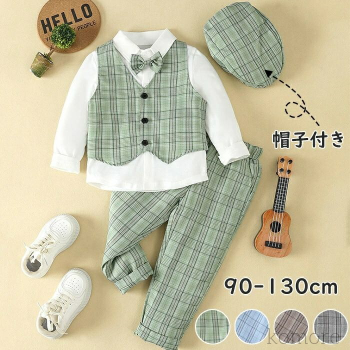 子供スーツ 男の子 入園式 4点セット 帽子付き キッズ スーツ 卒園式 発表会 こども 子供服フォーマルスーツ 子供服 上下セット 長袖 結婚式 入学式 おしゃれ