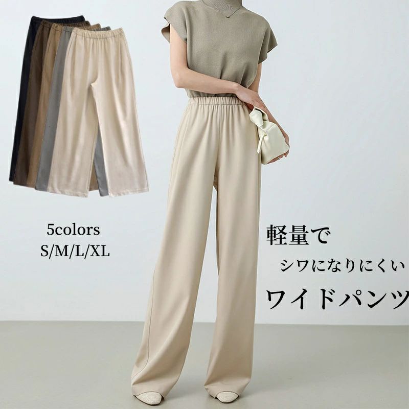 バックゴム ズボンロング 秋 夏 春 ハイウエスト オフィスカジュアル ストレートパンツ 黒 スラックスパンツ ウエスト オフィス