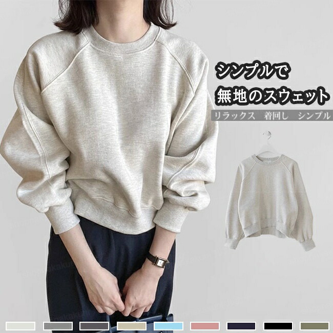 トップス レディース スウェット プルオーバー 長袖 ショート丈 オーバーサイズ ボリューム袖 ドロップショルダー 着心地良い リラックス シンプル おしゃれ 体型カバー 着回し ロングシー ゆったり