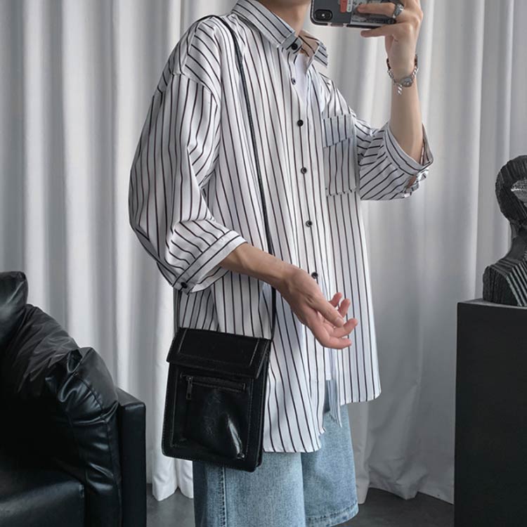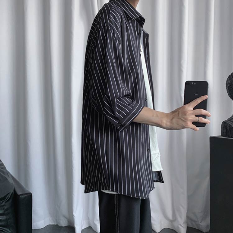 全2色×7サイズ ストライプ柄シャツ メンズファッション 早い者勝ち ブラック ホワイト M L XL 2XL 3XL 4XL 5XL