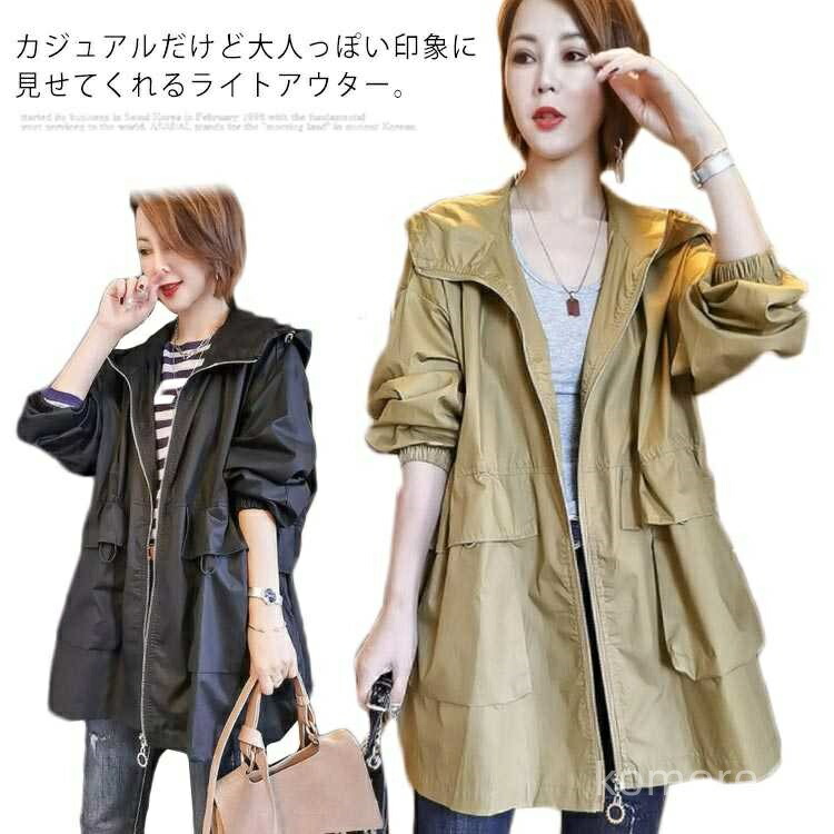 ミドル丈 裏地あり 体型カバー ジップ レディースファッション 早い者勝ち ブラツク カーキ M L XL 2XL 3XL
