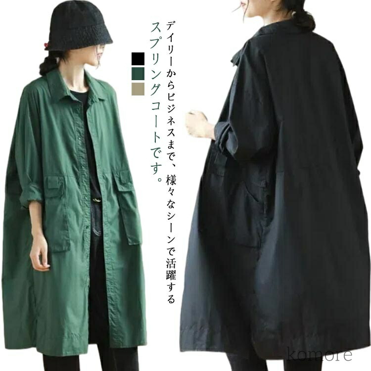 春アウターレディース 春物コート ライ レディースファッション 豊富 ブラック ベージュ グリーン L XL