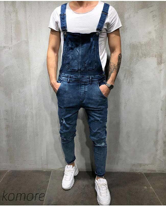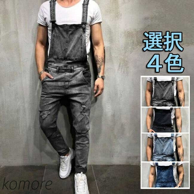 メンズ オーバーオール デニム ダメー オーバーオール 新登場! ライトブルー ブルー ブラック S M L XL 2XL 3XL