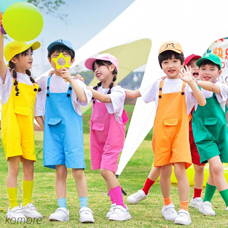 サロペットパンツ 3点セット 保育園 キッズ オーバーオール 新登場! ブルー オレンジ ピンク レッド イエロー グリーン パープル 100 110 120 130 140 150 160 170