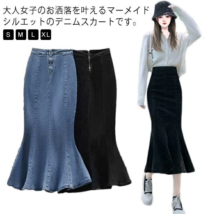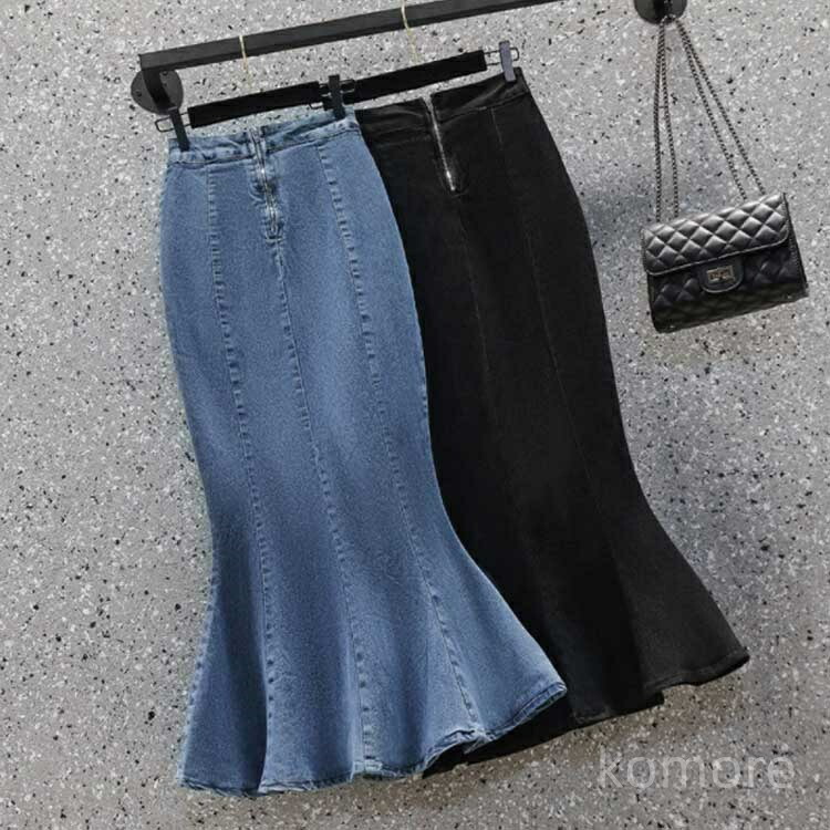 デニム デニムスカート ハイウエスト ボトムス スカート 通販 ブラック ブルー S M L XL