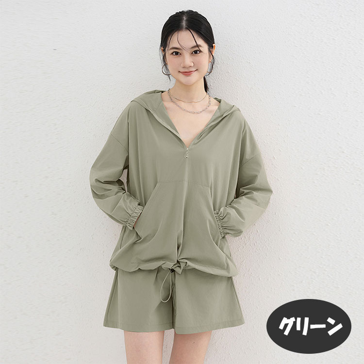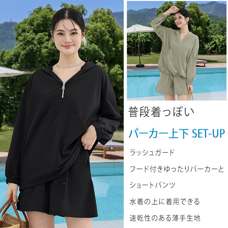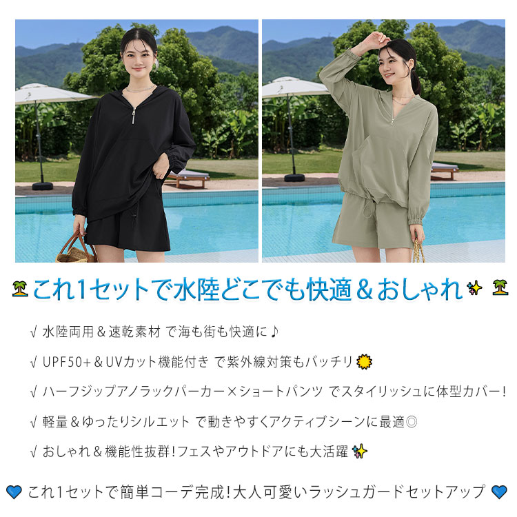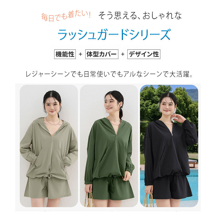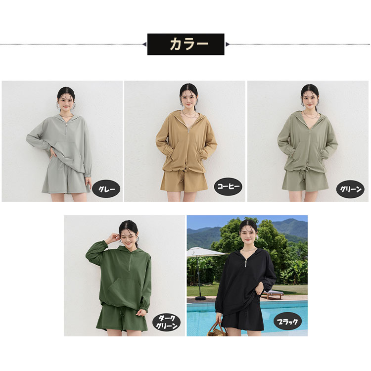 ラッシュガード セットアップ レディー スポーツ アウトドア 人気 グレー コーヒー グリーン ダークグリーン ブラック