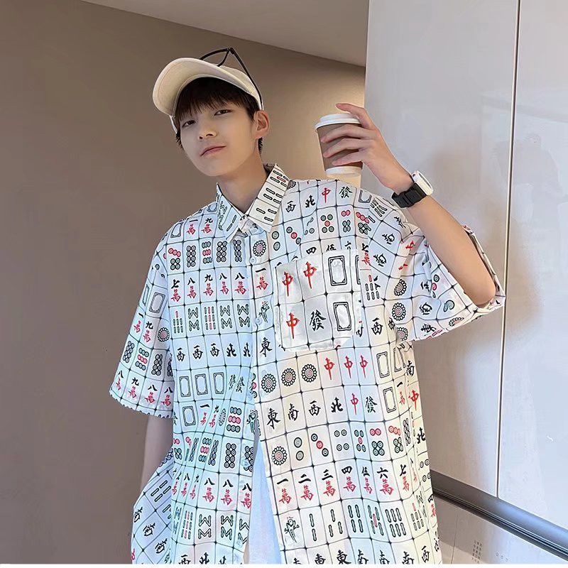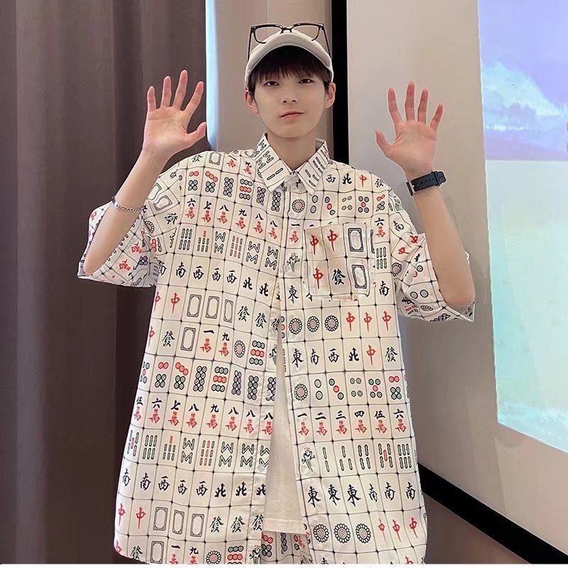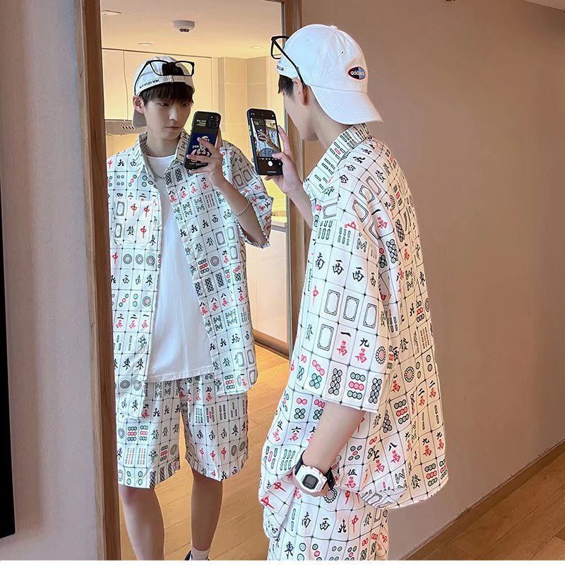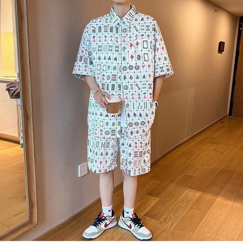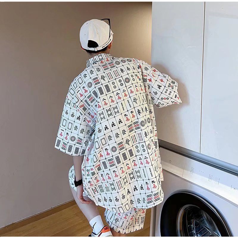 上下セット メンズ 半袖シャツ 麻雀シ メンズファッション 通販 M L XL 2XL 3XL