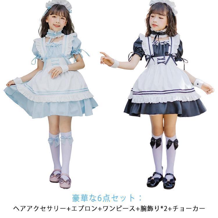 メイド子供 メイド服 ハロウィン キッ ホビー 続々登場 ブラック ブルー 110 120 130 140 150