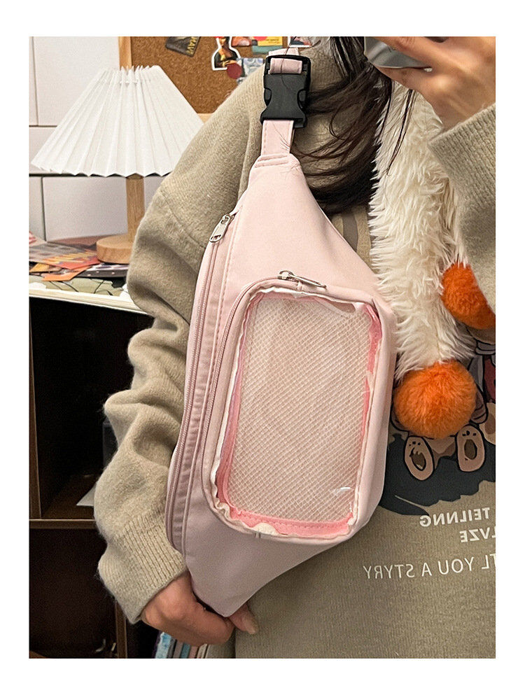 メンズ レディース 小さめ クリアバッグ 推しバッグ 推し活 推し 缶バッチ ミニバッグ ウエストバッグ ボディバッグ 痛バ ミニ
