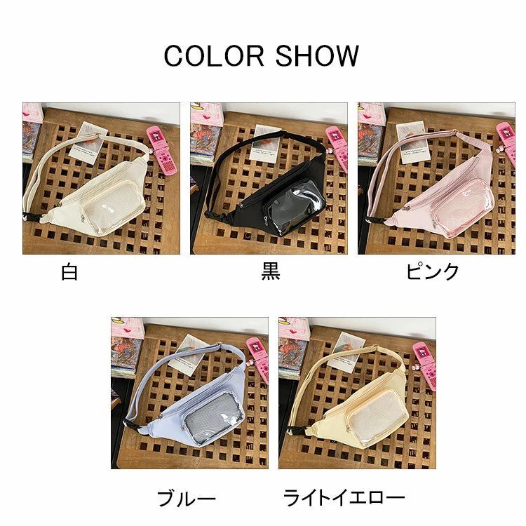 メンズ レディース 小さめ クリアバッ バッグ レディースバッグ ボディバッグ ウエストポーチ 早い者勝ち 白 黒 ピンク ブルー ライトイエロー