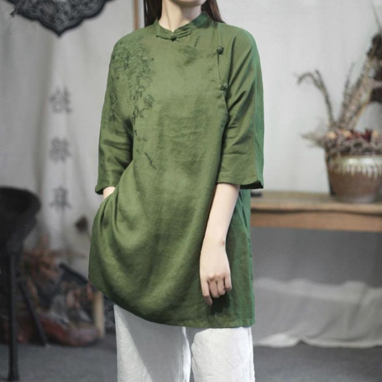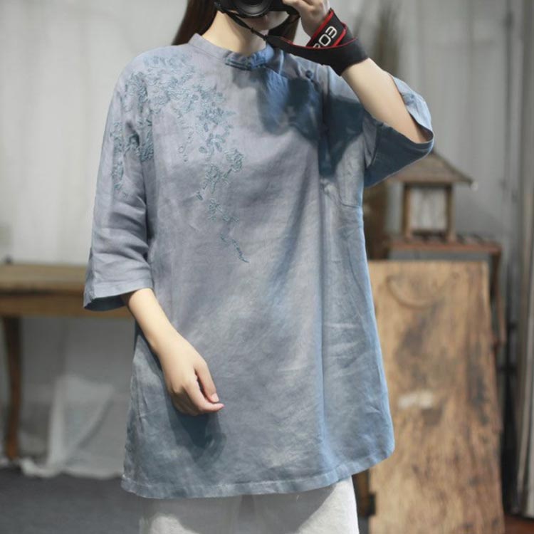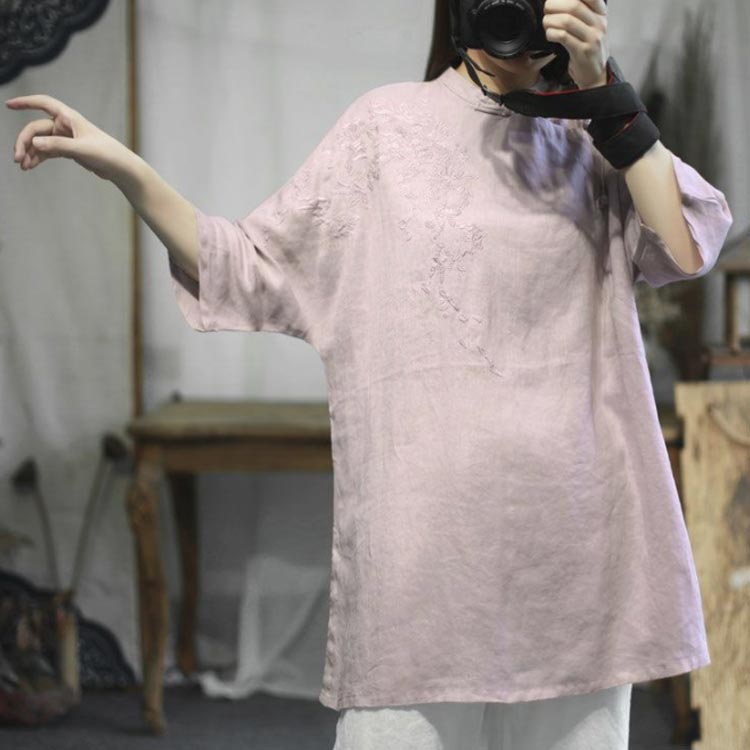 体型カ ナチュラル ゆったり 夏服 刺 トップス シャツ ブラウス 続々登場 ピンク グリーン ブラウン ブルー M L XL 2XL 3XL
