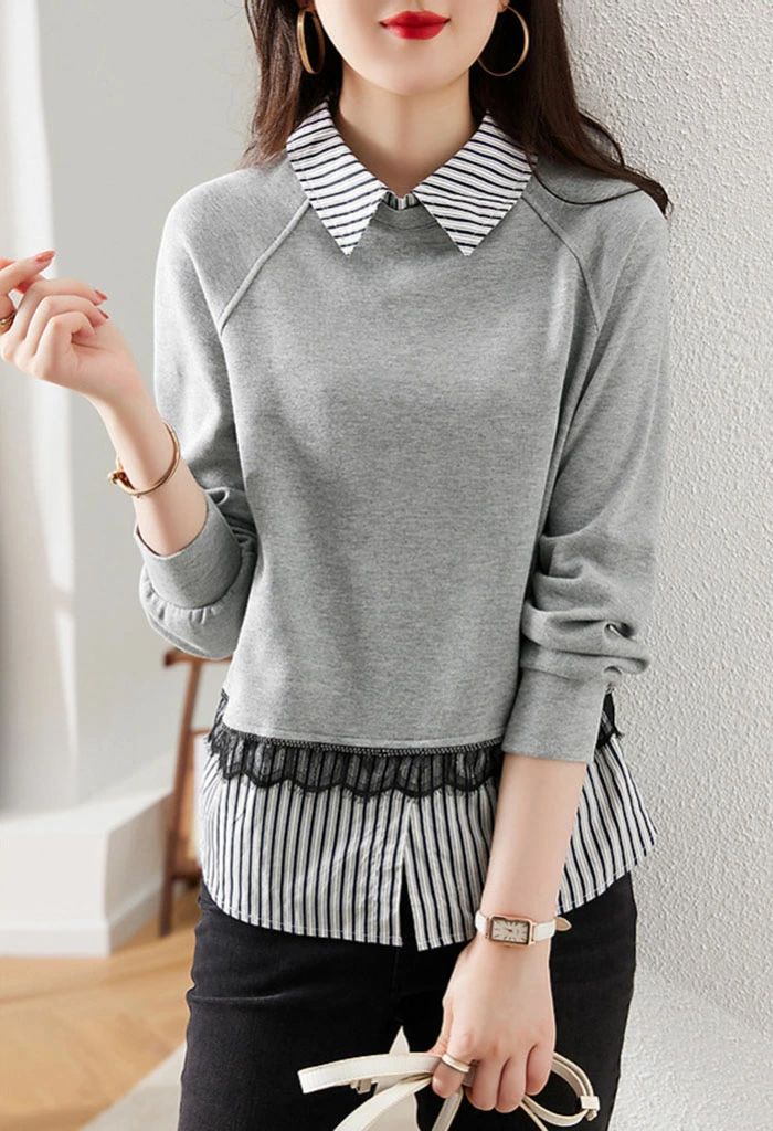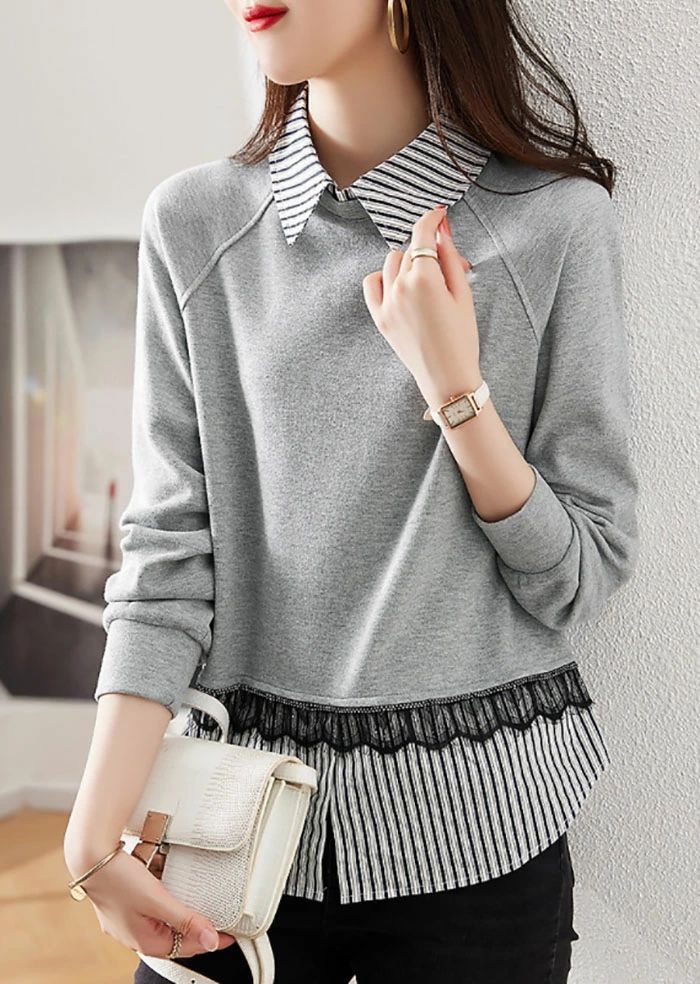 シアースリーブ ドッキングシャツ ボウタイシャツブラウス