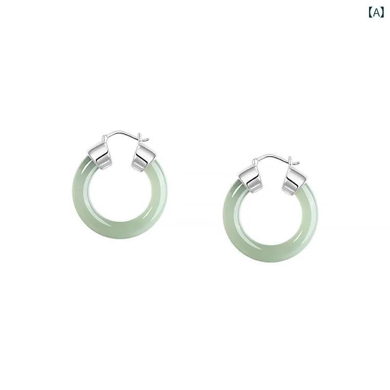 ピアス レディース 高級 翡翠 ラウンド レトロ シンプル おしゃれ 軽量 万能 カジュアル ファッション アクセサリー キレイ目