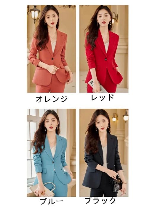 マスーツ 卒業式 入学式 OL女性 オ スーツ セットアップ パンツスーツ 特集 ブラック ブルー オレンジ レッド S M L XL 2XL 3XL 4XL