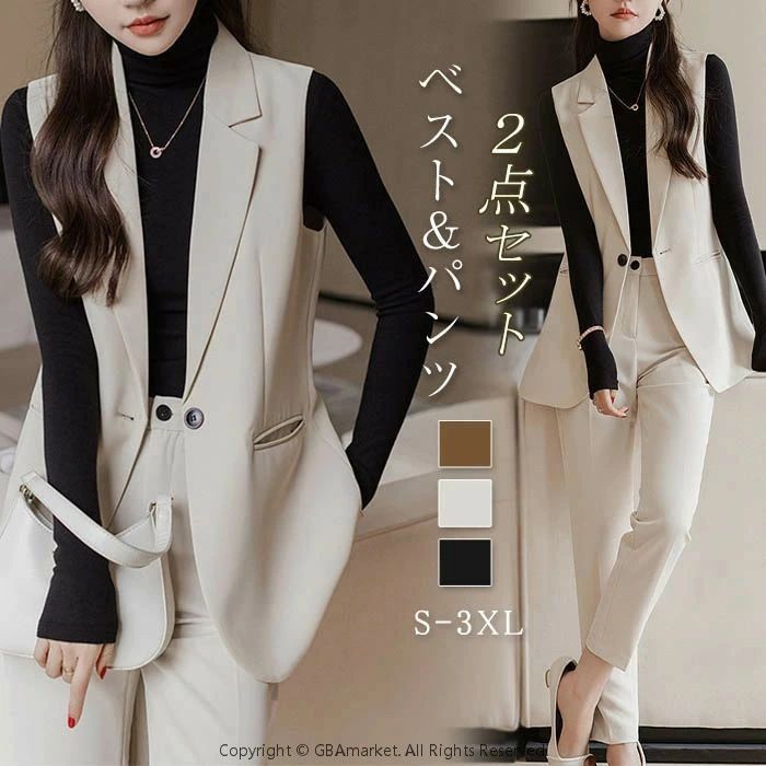 セットアップ 2点セット レディース スーツ セットアップ パンツスーツ 通販 ブラック ベージュ ブラウン S M L XL 2XL