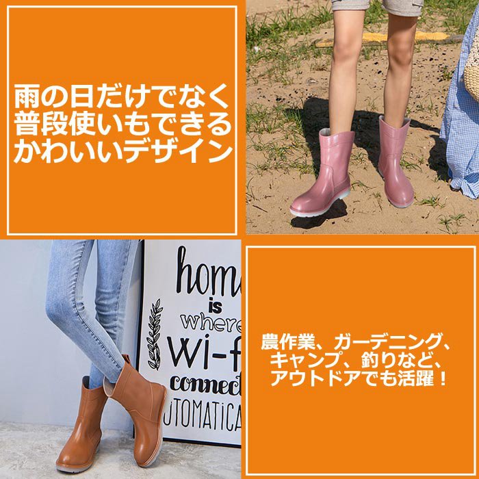 22.5~25.5cm レインブーツ 靴 通販 ブラック+レッド ブラック キャメル ブライトグリーン ピンク 35(22.5cm) 36(23cm) 37(23.5cm) 38(24cm) 39(24.5cm) 40(25cm) 41(25.5cm)