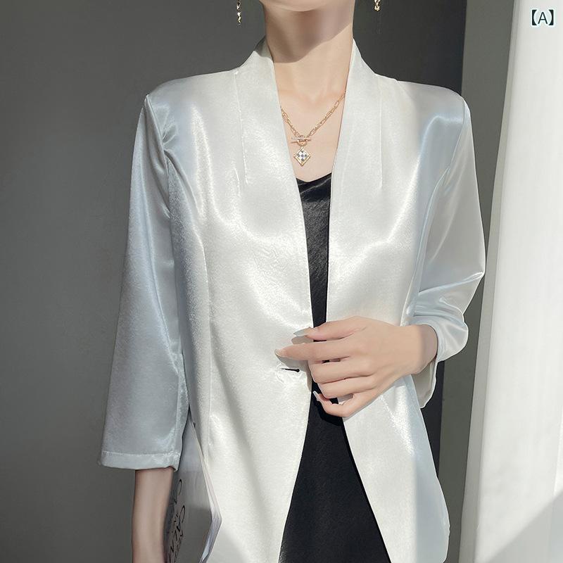 ジャケット レディース 春夏 七分袖 レディースファッション 早い者勝ち A:白 B:シャンパン C:ゴールド D:黒 M L XL XXL XXXL XXXXL
