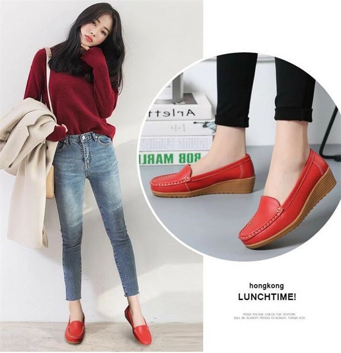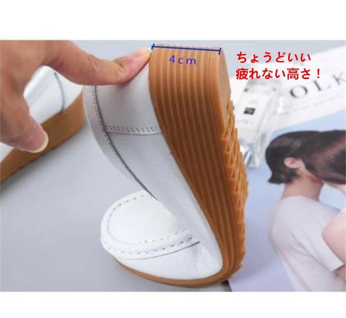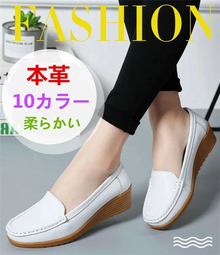 看護師 女性用 OL 通勤 ウェッジソール カジュアル靴 モカシン ぺたんこシューズモカシン スリッポン