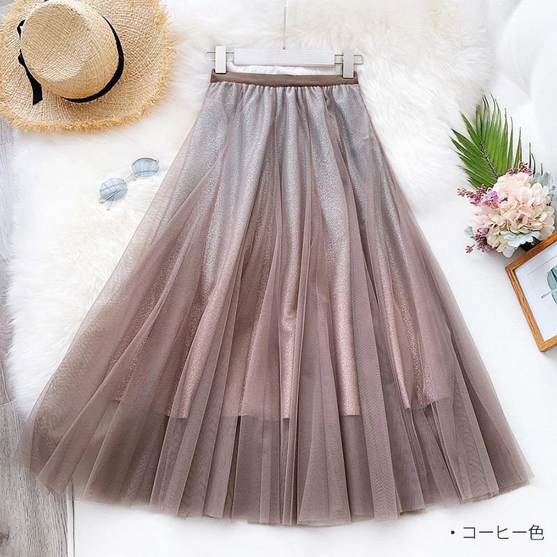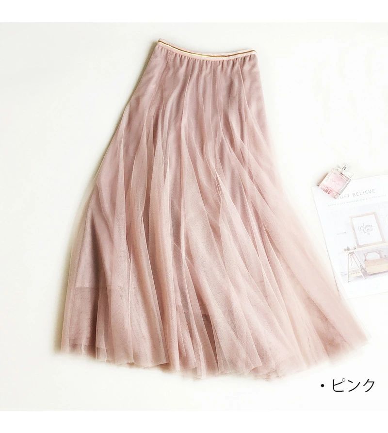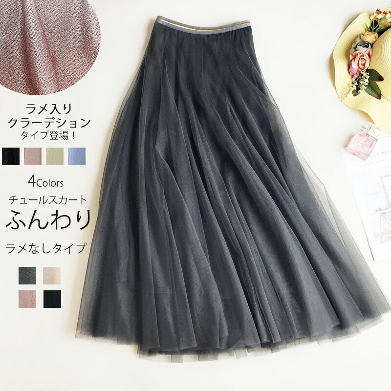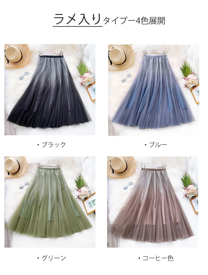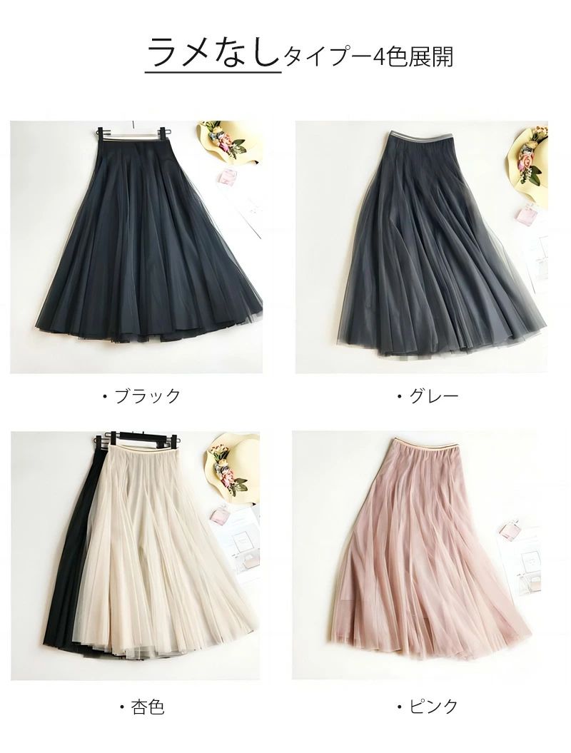 チュールスカート ロング スカート レ ボトムス スカート 人気 ブラック(ラメなし) グレー(ラメなし) 杏色(ラメなし) ピンク(ラメなし) ライトグレー(ラメなし)