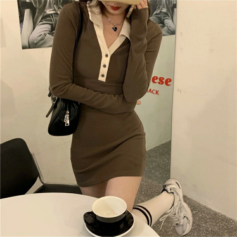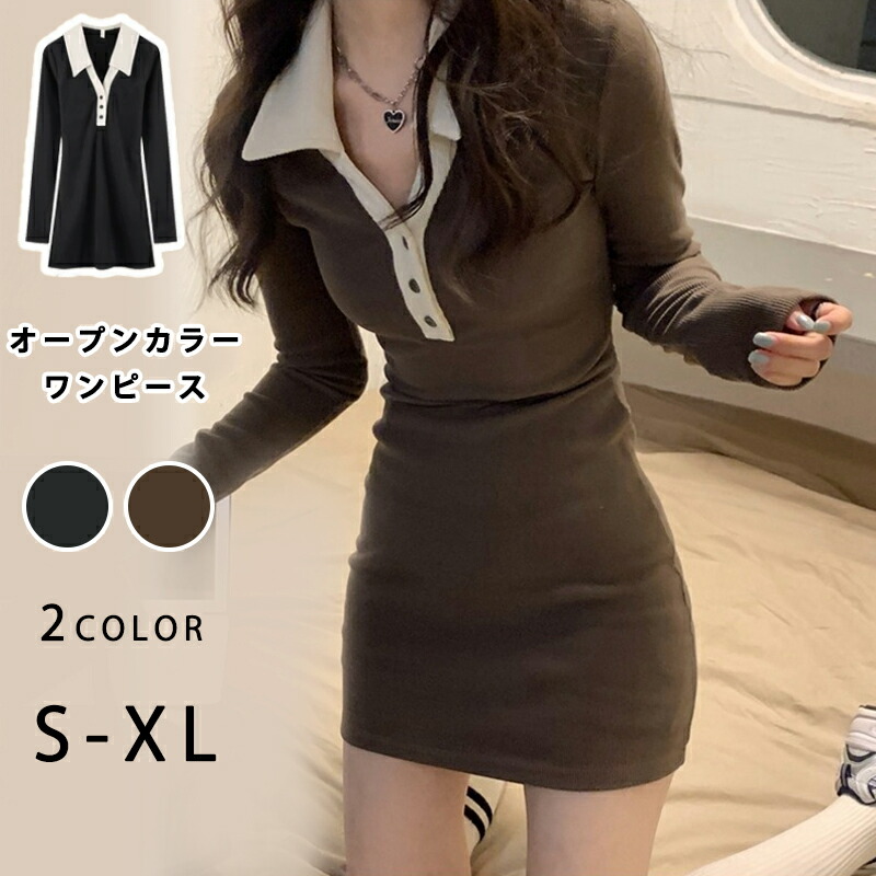 ワンピース ミニ丈 オープンカラー ニ レディースファッション 新登場! ブラック コーヒー S M L XL/LL