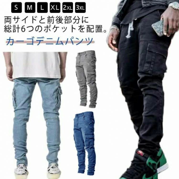 ジーパン 作業ズボン デニムパンツ ス ライトブルー ブラック グレー ブルー S M L XL 2XL 3XL