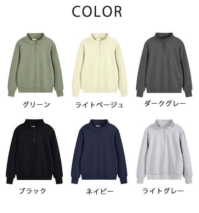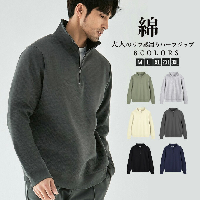 トレーナー メンズ ハーフジップ 綿 トップス スウェット トレーナー 続々入荷中 ブラック ダークグレー ネイビー ライトグレー ライトベージュ グリーン M L XL 2XL 3XL