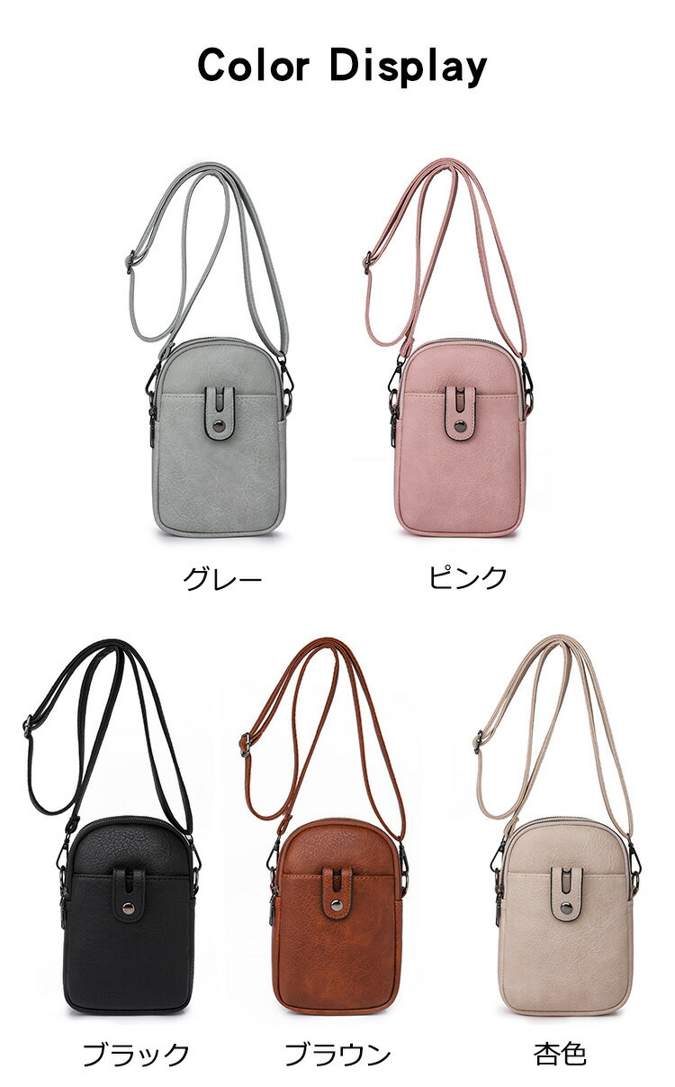 実用的ミニショルダーポーチ スマホポー バッグ レディースバッグ アクセサリーポーチ 人気 グレー ピンク ブラック ブラウン 杏色