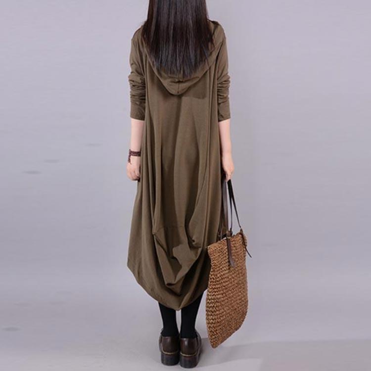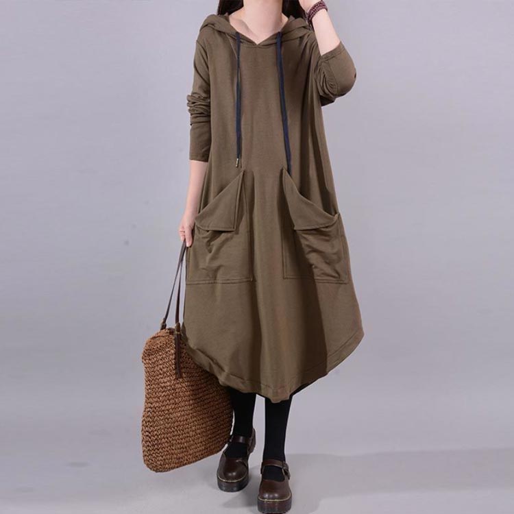 フード付き 春 L-5XLサイズ アシ ワンピース 超目玉商品 ブラウン ブラック L XL 2XL 3XL 4XL 5XL