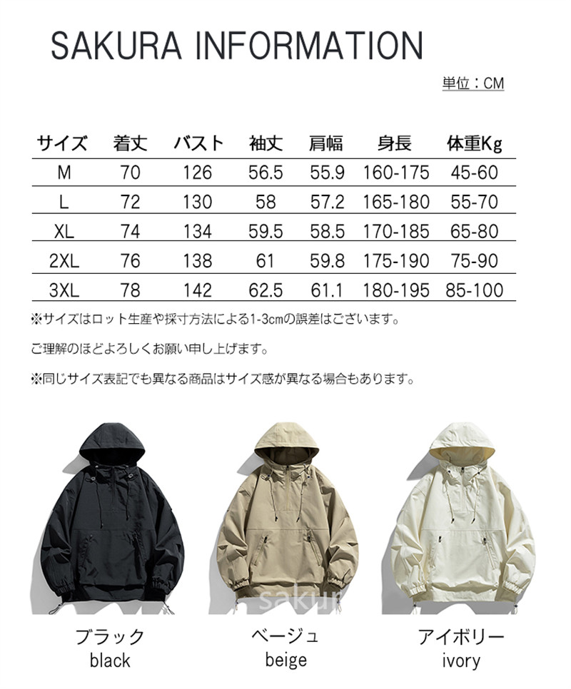 トップス メンズ レディース アノラッ レディースファッション 早い者勝ち ブラック アイポリー ベージュ M L XL 2XL 3XL