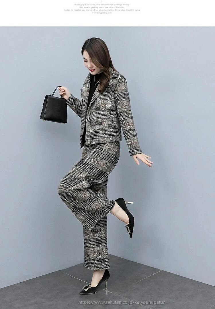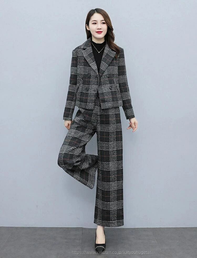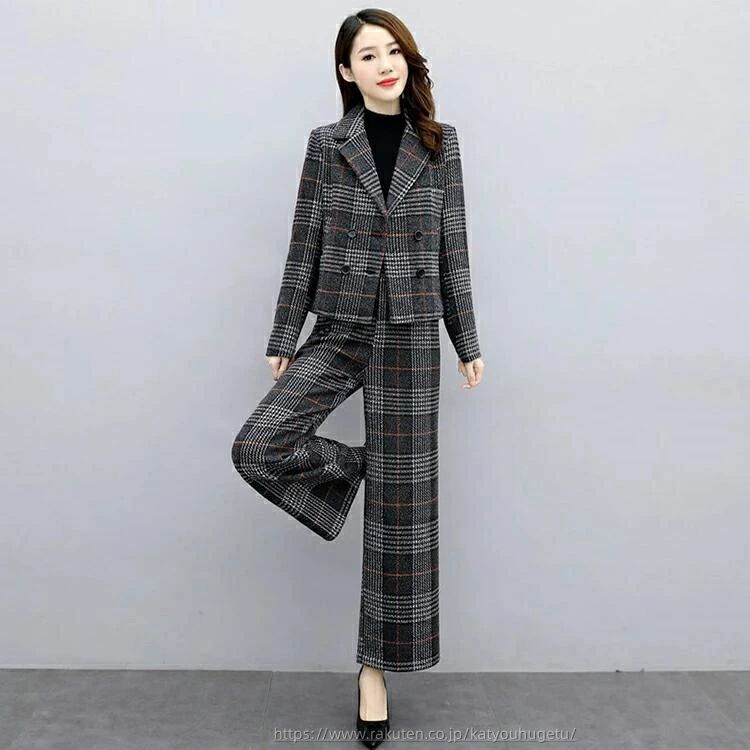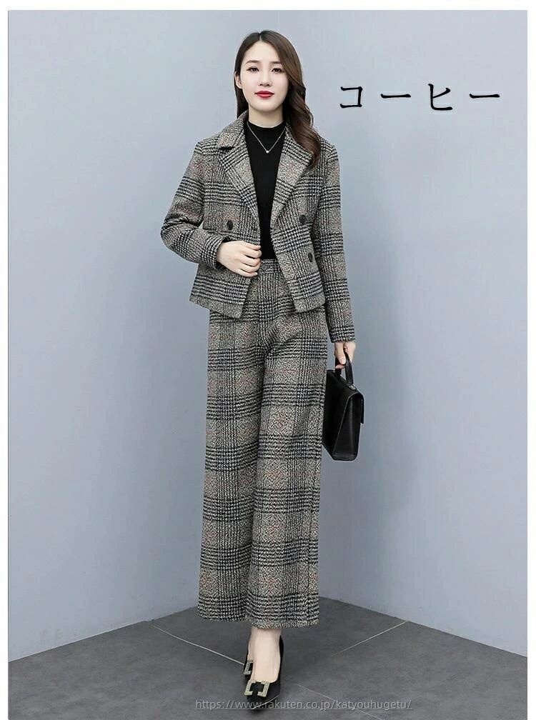 洗える ビジネススーツ 女性 大きいサ スーツ セットアップ パンツスーツ 通販 コーヒー グレー S M L XL 2XL 3XL
