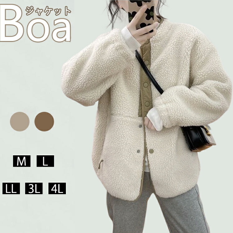 ボアジャケット レディース ボアブルゾ コート ジャケット 豊富 ベージュ ブラウン M L LL 3L 4L