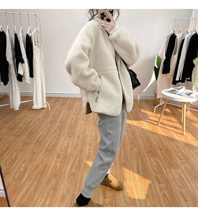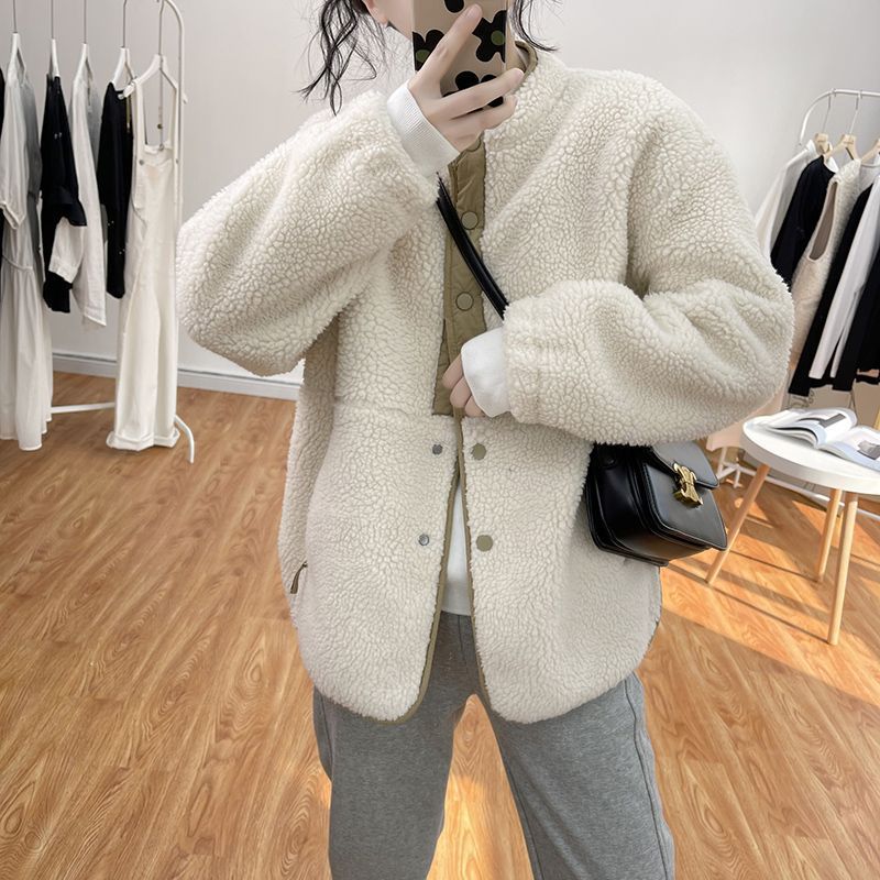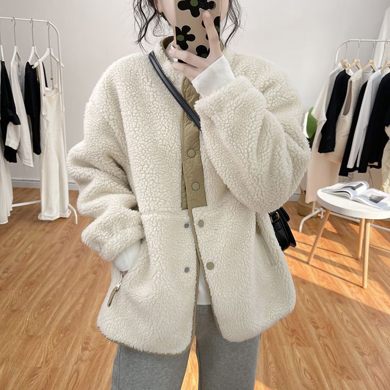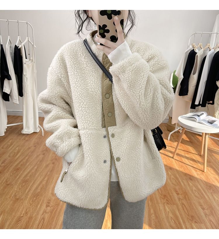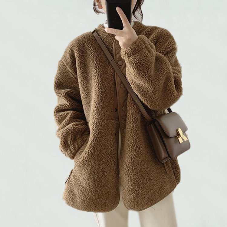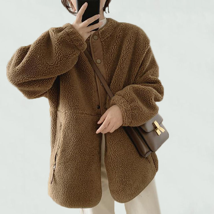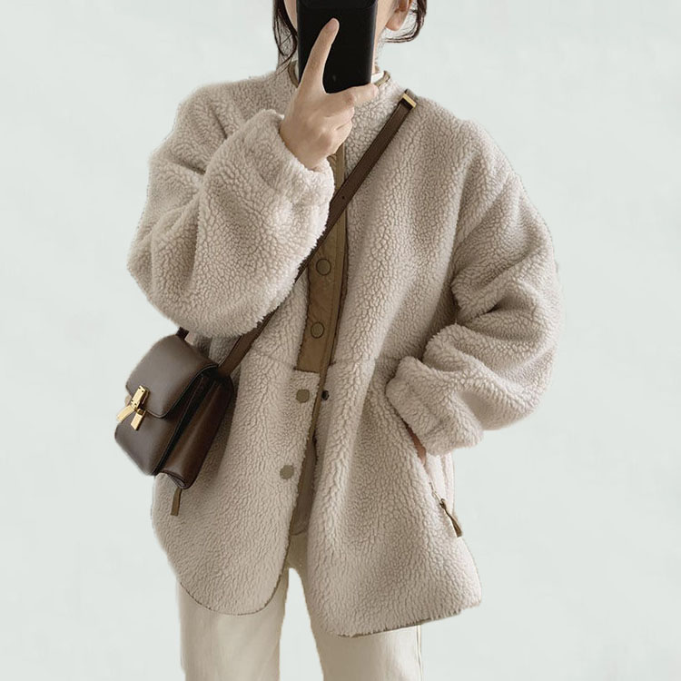 ゆったり大きめのデザイン、体型カバーしてくれるふわふわで柔らかなボアブルゾンです。 ポケットがあり、ボタン開きでバイカラーのデザインですので、すごくおしゃれです。 袖口部分にはリブが入り、防風効果が抜群です。