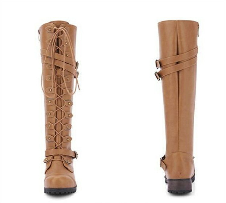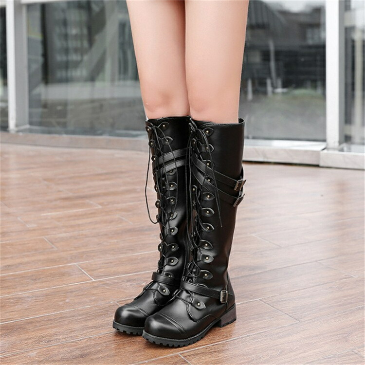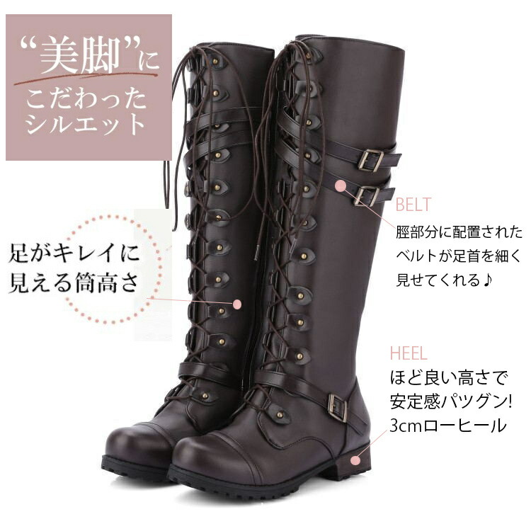 ロングブーツ レディース ブーツ 3cmヒール 疲れない ニーハイブーツ 筒周り 歩きやすい 足が細く見える ゆったり 大きい 履き口 幅広 甲高 ハイヒール 編み上げ ダン ローヒール
