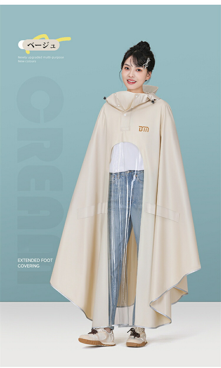 ・自転車やバイクに乗っても足回りが濡れにくい!ロング丈なので、足元までしっかりとカバーできてズボンや靴も濡れにくい!雨から全身を守ります。