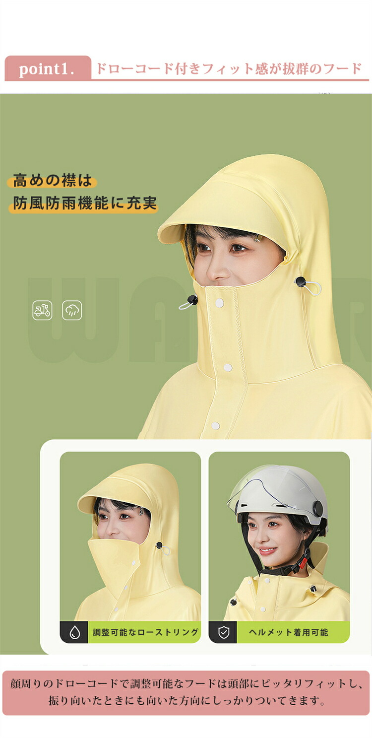 ・フードとツバのダブルガードで雨風を防ぐ!しっかりと頭もカバーでき、顔が濡れにくく、化粧が崩れる心配も少なくなります。