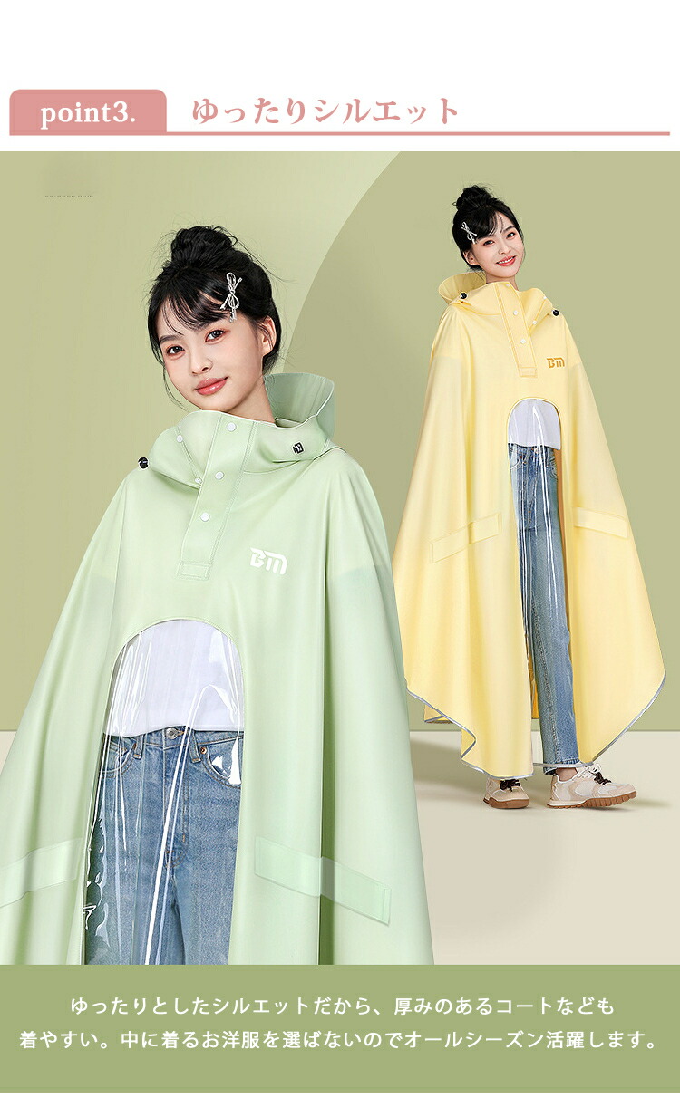 ・着脱簡単!急な雨でもすぐに着ることができ、身軽に動けるので、忙しい朝や移動時に便利です。通学路や駅での移動が楽になる!