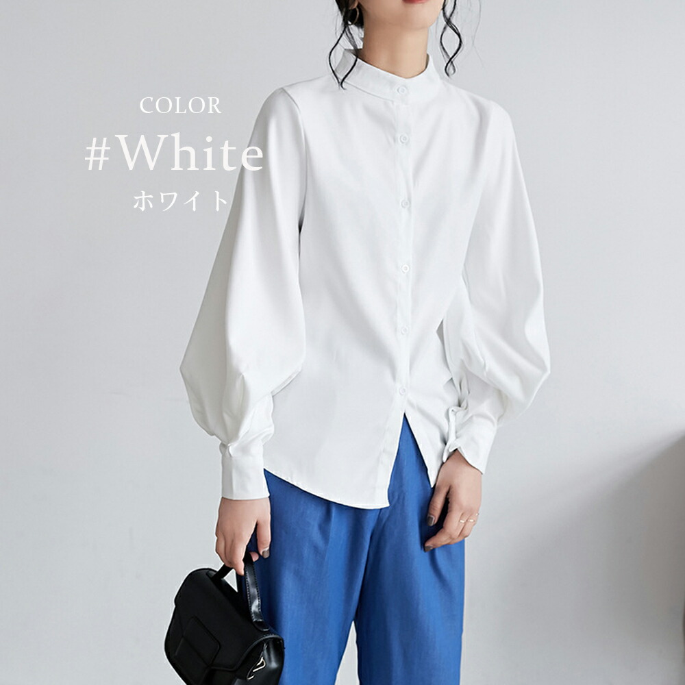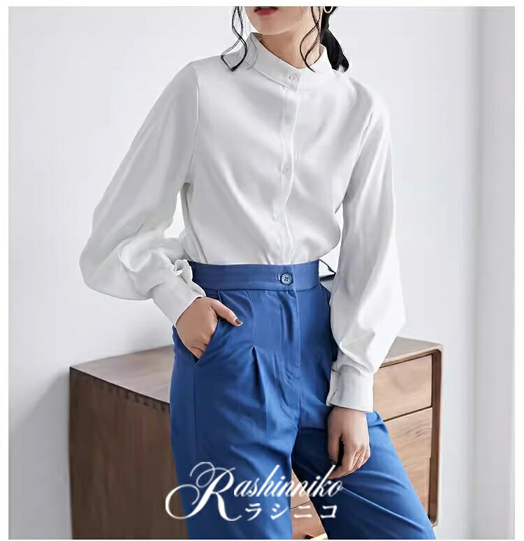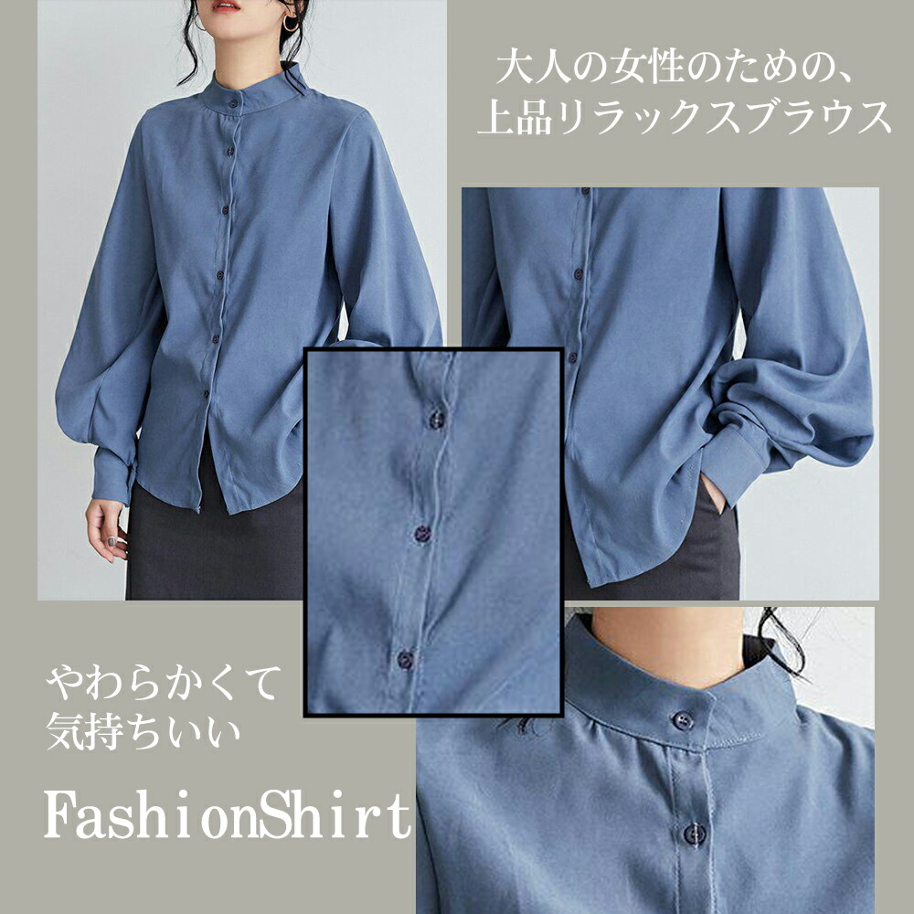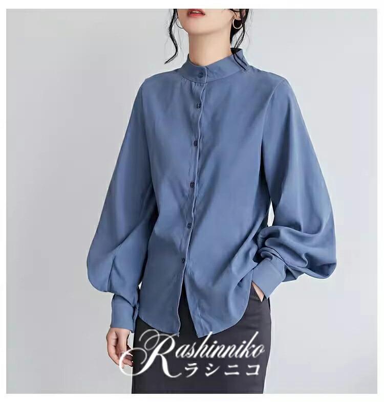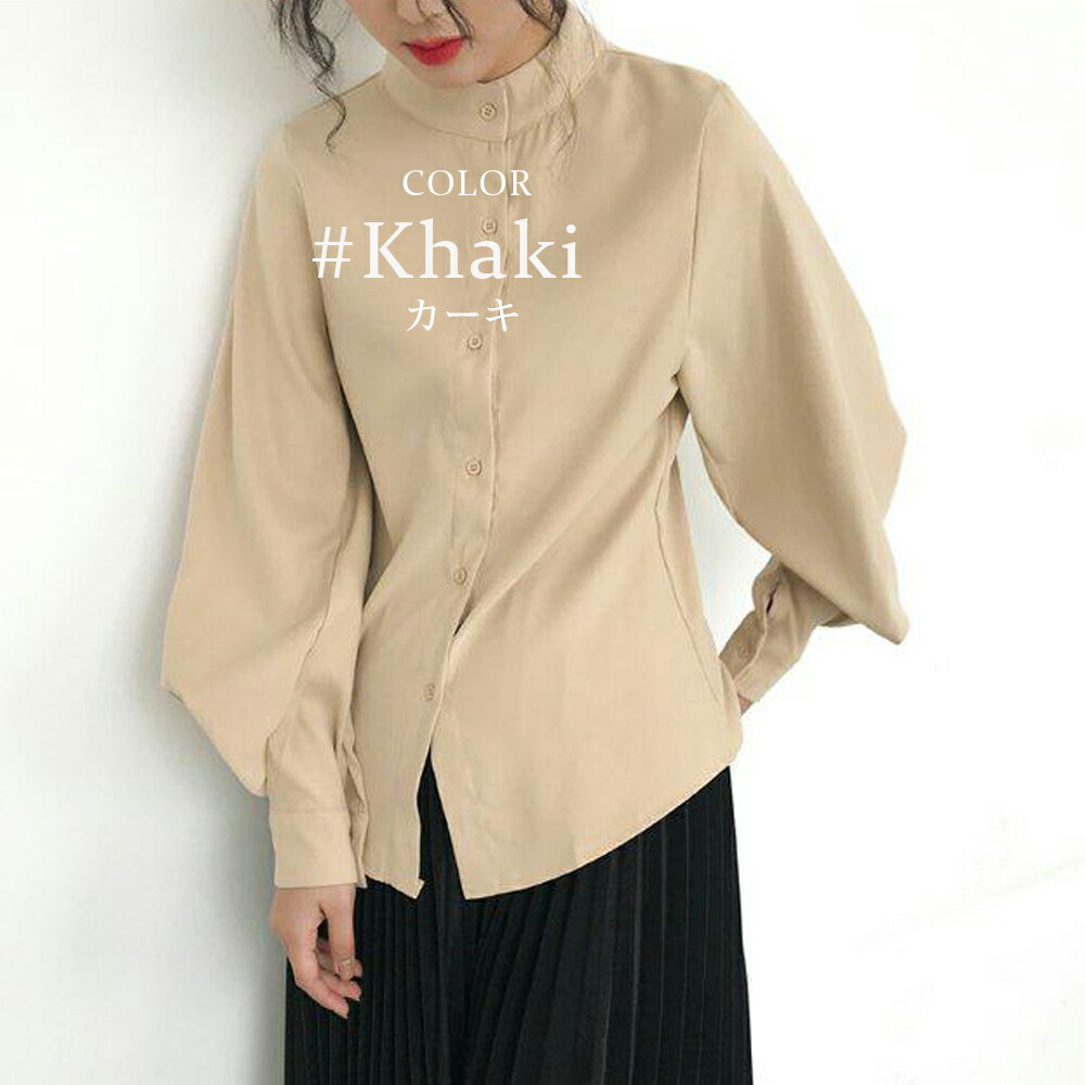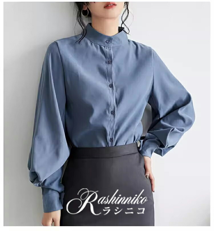 立ち襟 ブラウス レディース 長袖 バ トップス シャツ ブラウス 超目玉商品 ブラック ホワイト カーキ ブルー S M L XL