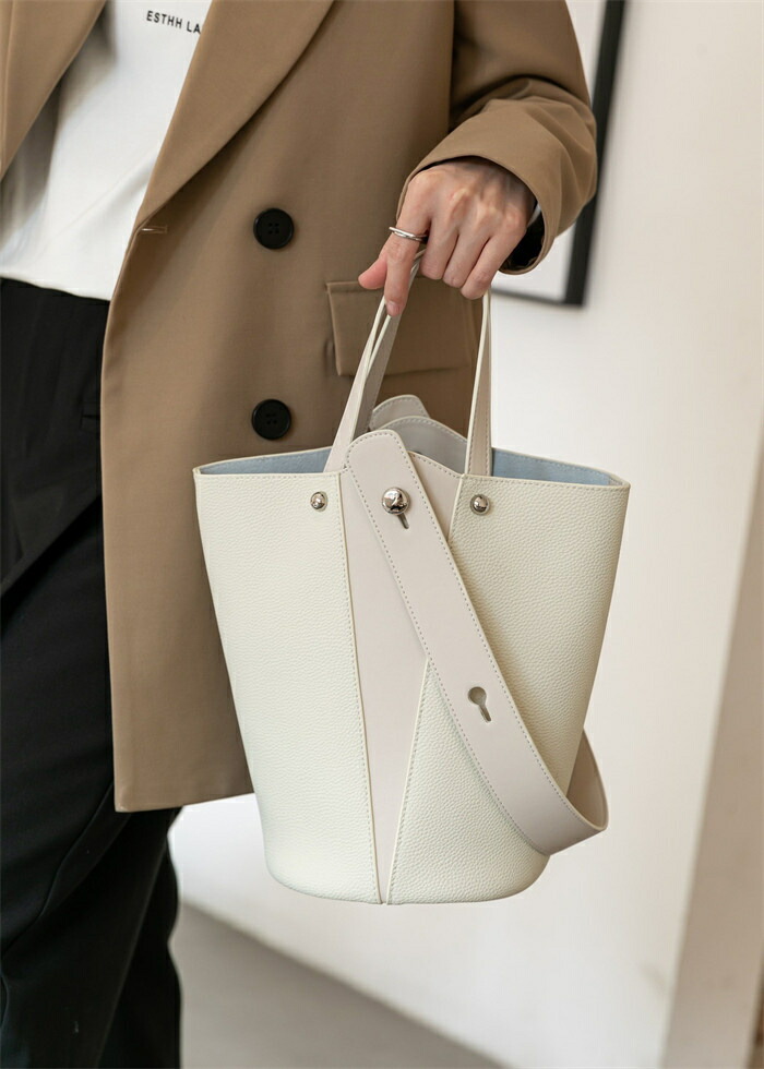 バケツバッグ 本革 ハンドバッグ レデ バッグ 小物 ブランド雑貨 早い者勝ち ホワイト きいろ ちゃいろ