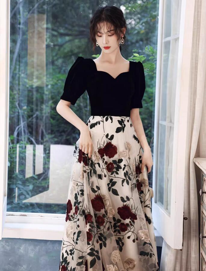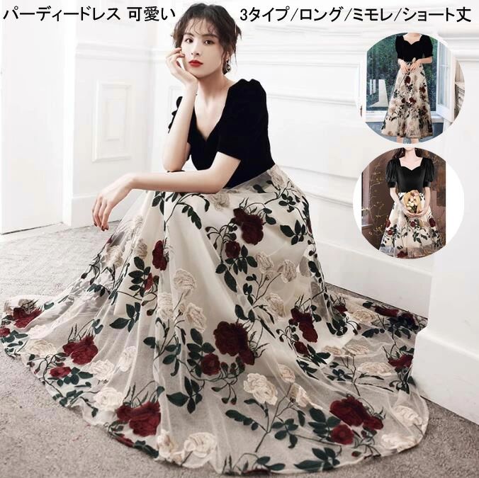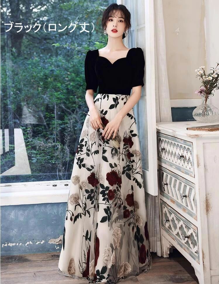可愛い お花嫁ドレス フォーマルドレス レディースファッション 続々登場 ブラック(ロング丈) ブラック(ミモレ丈) ブラック(ショート丈) S M L XL 2XL