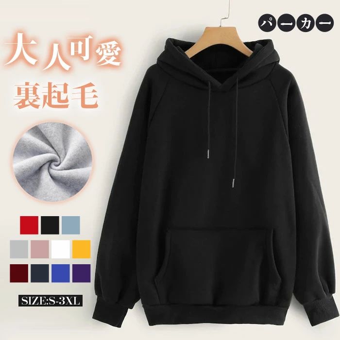 レディース シ フード 可愛い 裏起毛 トップス パーカー 続々入荷中 レッド 黒 スカイブルー グレー ピンク ホワイト イエロー ワインレッド ネイビー ブルー パープル S M L XL 2XL 3XL
