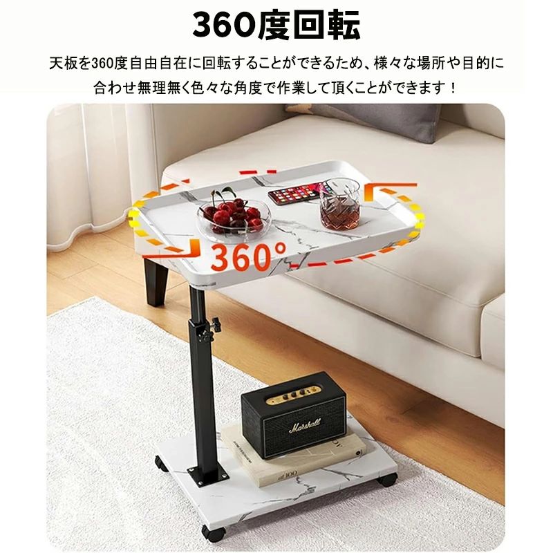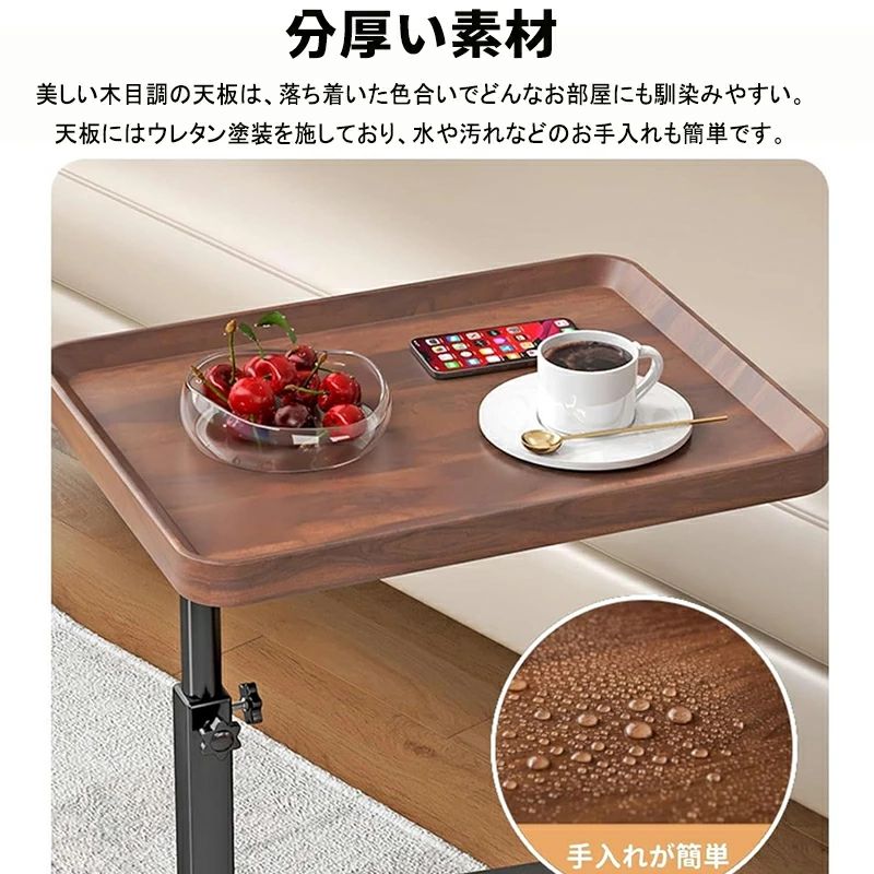 サイドテーブル キャスター付き 昇降式 ナチュラル くるみ色 ホワイト 方形 円形