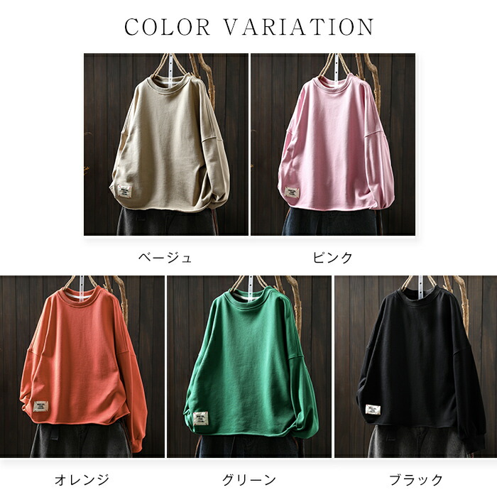 レディース 秋冬カットソー ティーシャ トップス Tシャツ カットソー 通販 ブラック ベージュ ピンク オレンジ グリーン