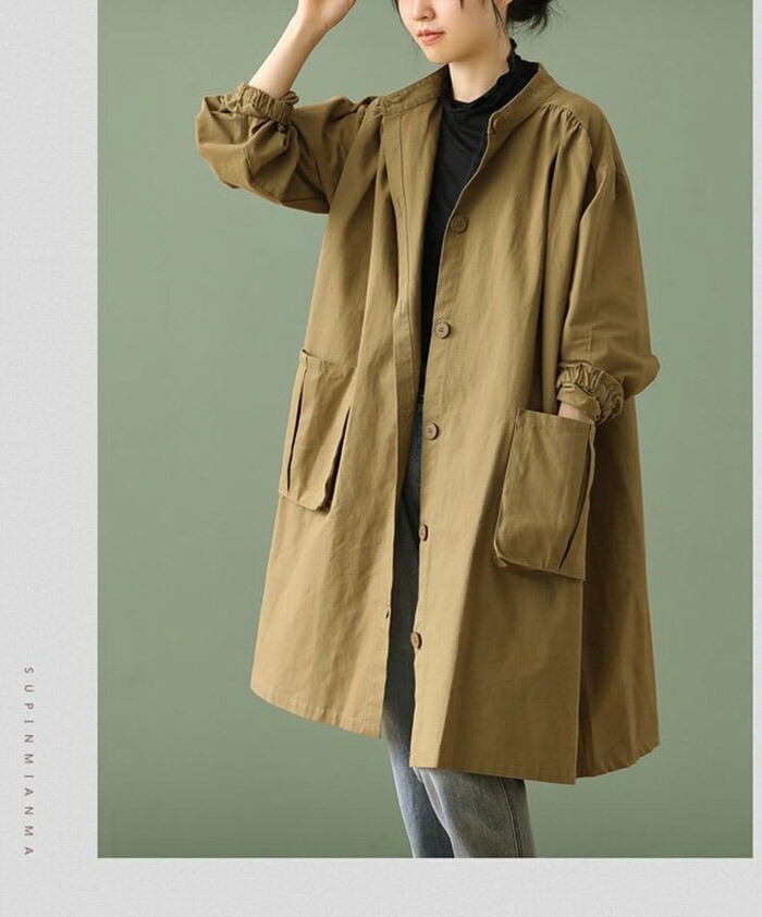 スプリングコート レディース ロング レディースファッション 早い者勝ち ベージュ グリーン L XL
